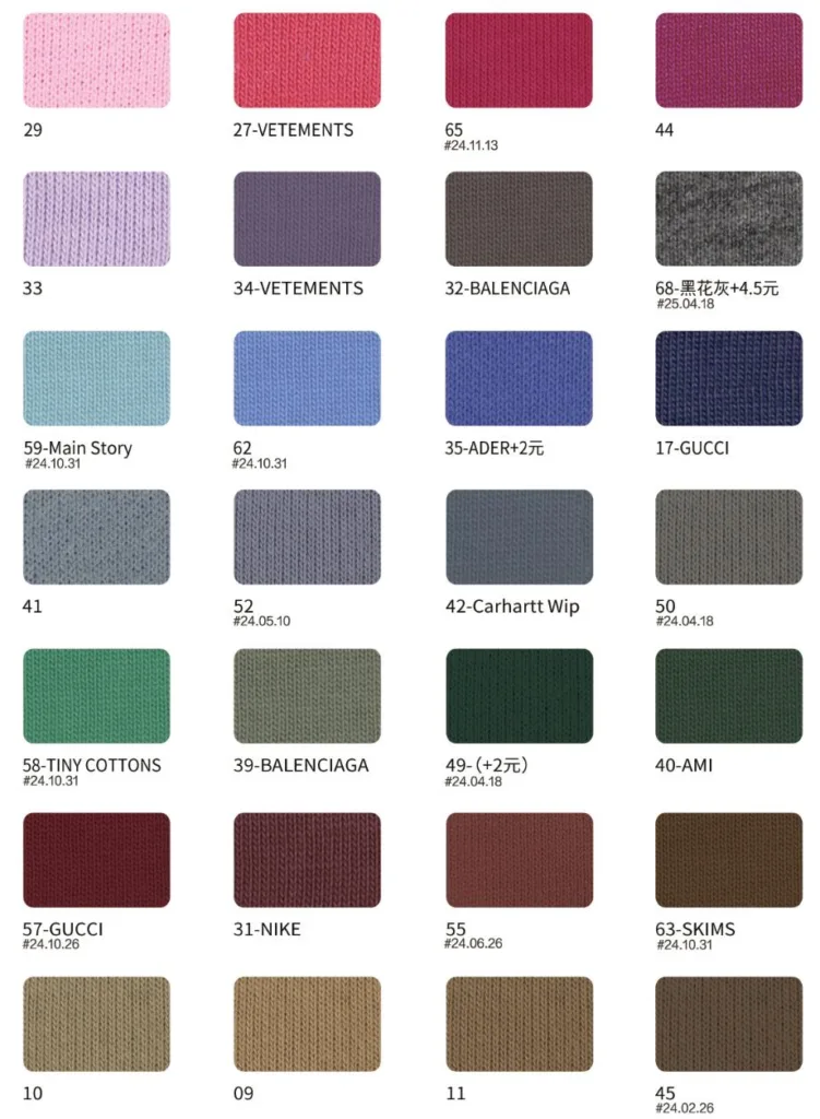 This page showcases popular fleece fabrics. They are all made from combed cotton blended with high-quality polyester.