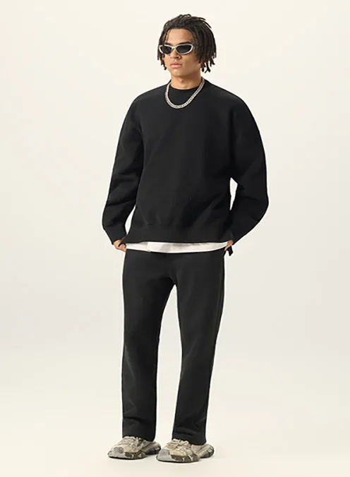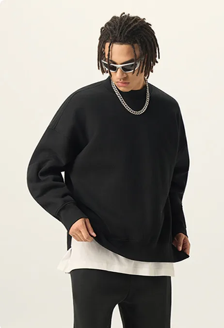 Side-Slit Layered Fleece-Lined Thickened Crewneck Sweatshirt #Y6302