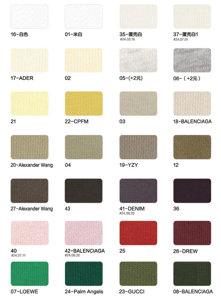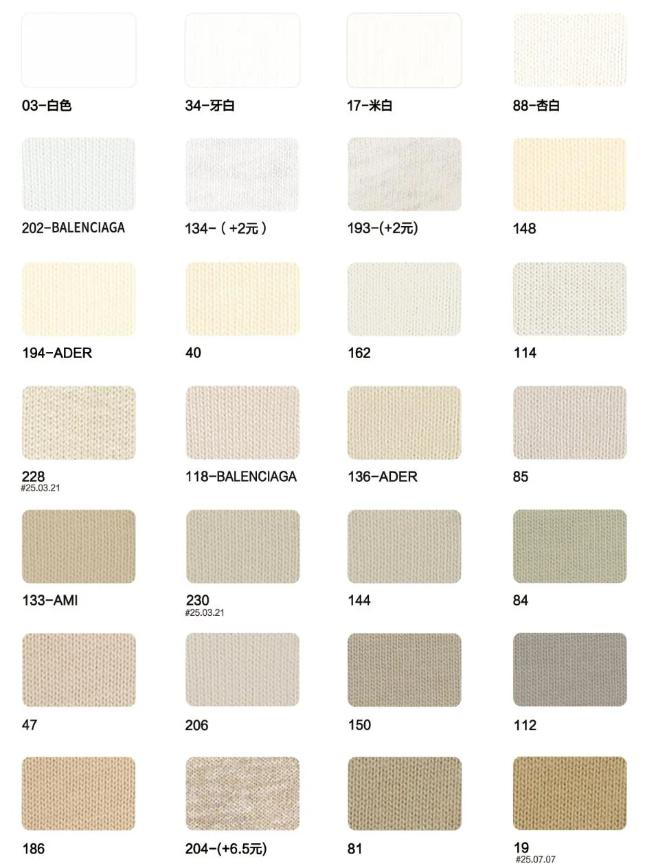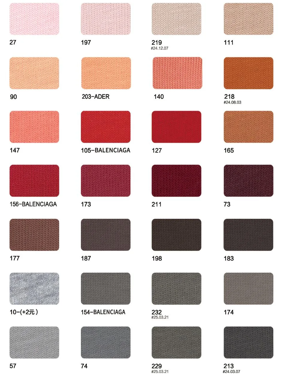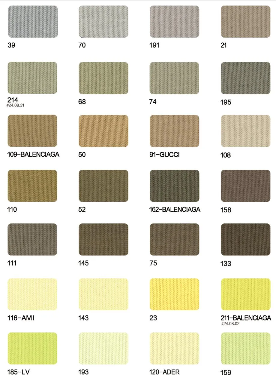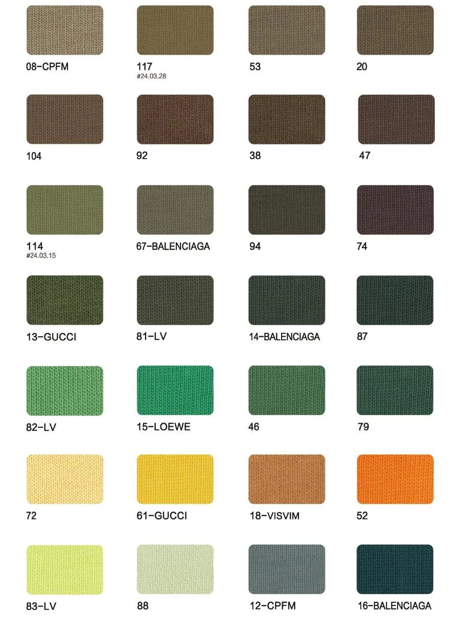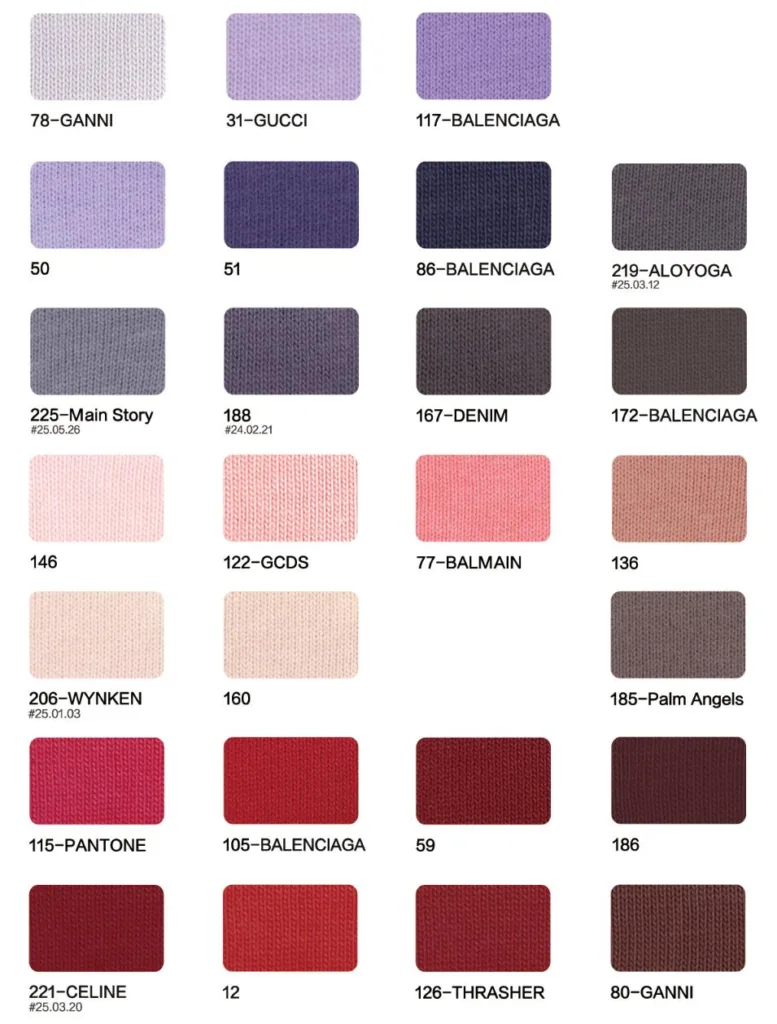 This page showcases popular T-shirt jersey fabrics with weights ranging from 195GSM to 385GSM, all crafted from 100% combed cotton.