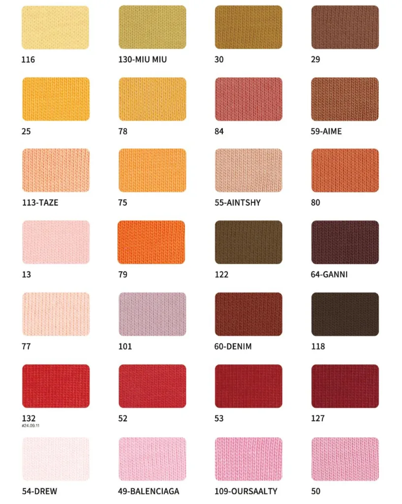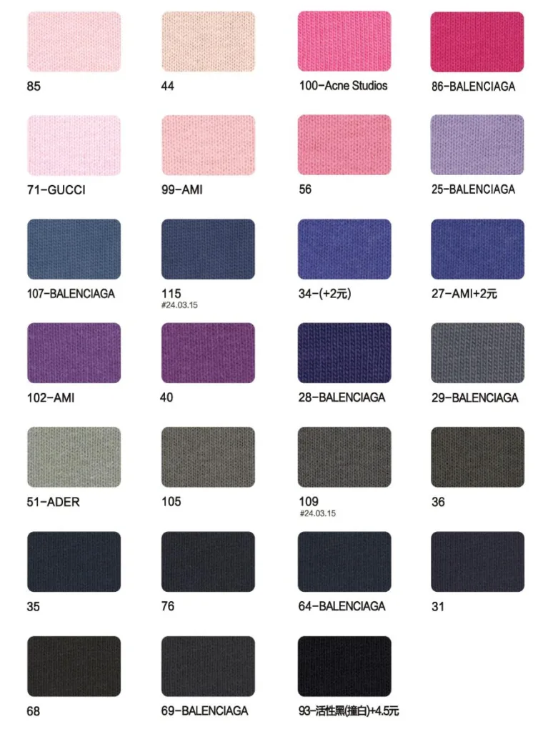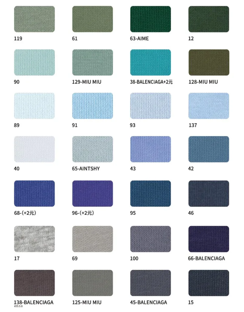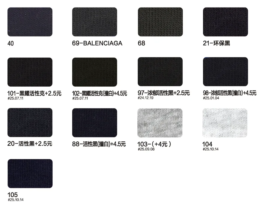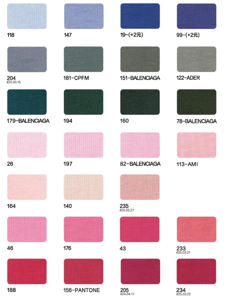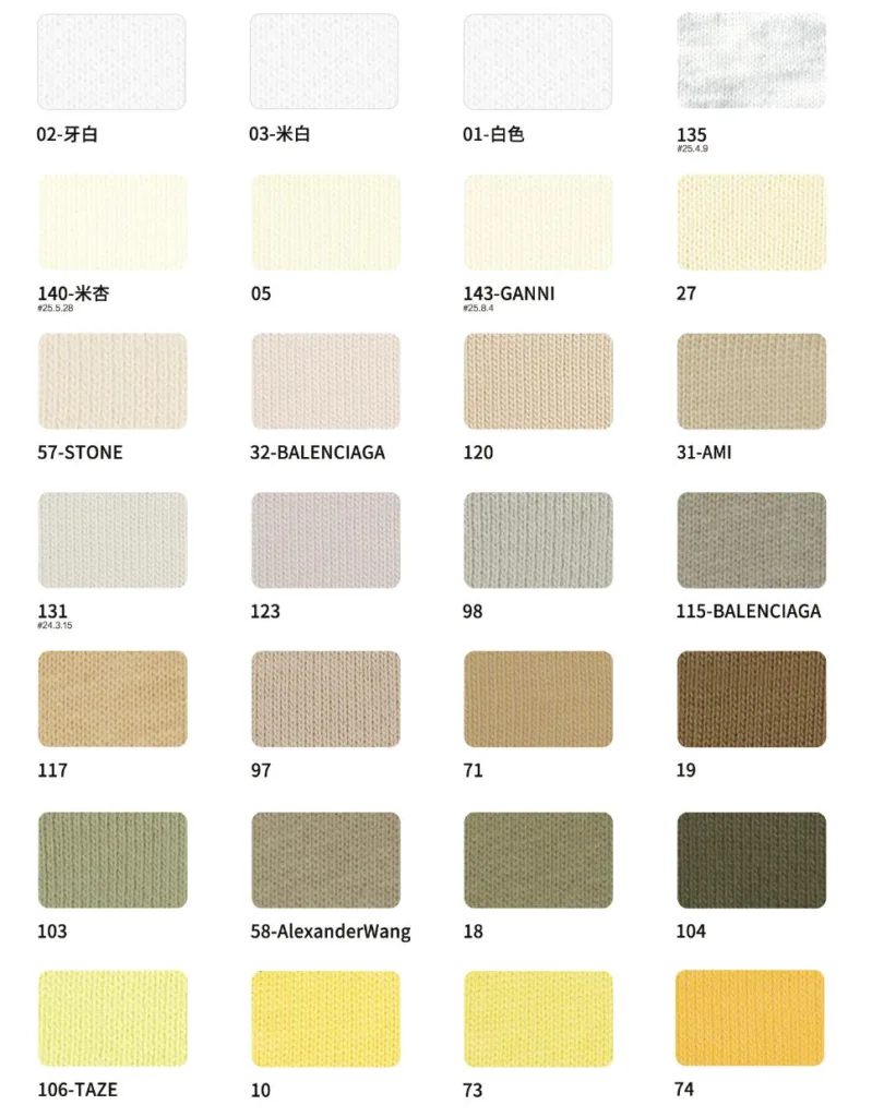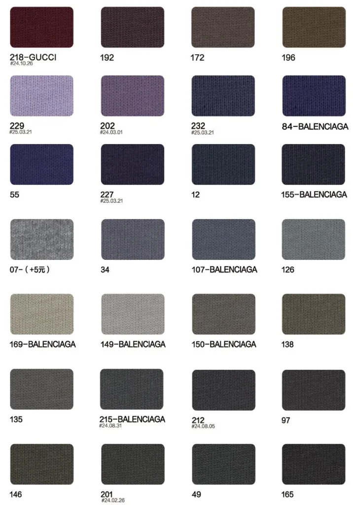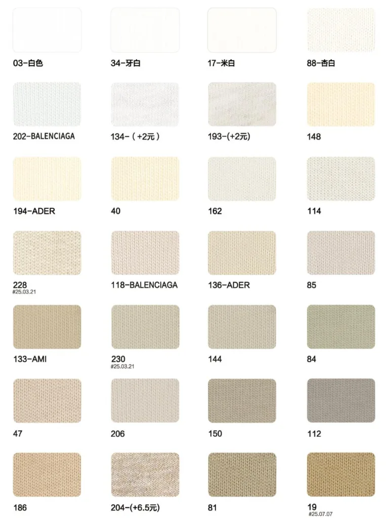 This page showcases popular T-shirt jersey fabrics with weights ranging from 195GSM to 385GSM, all crafted from 100% combed cotton.