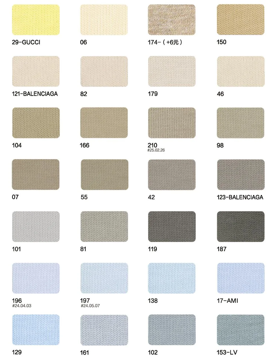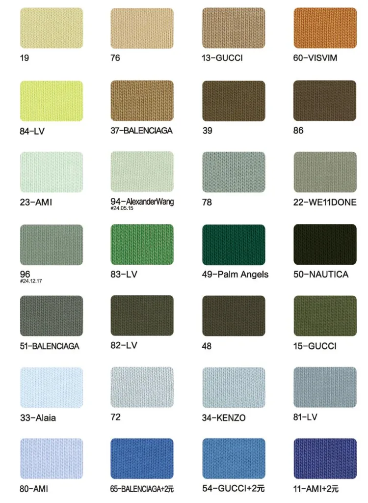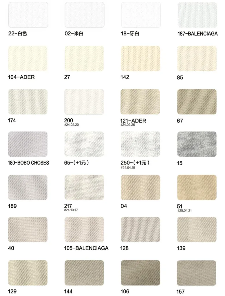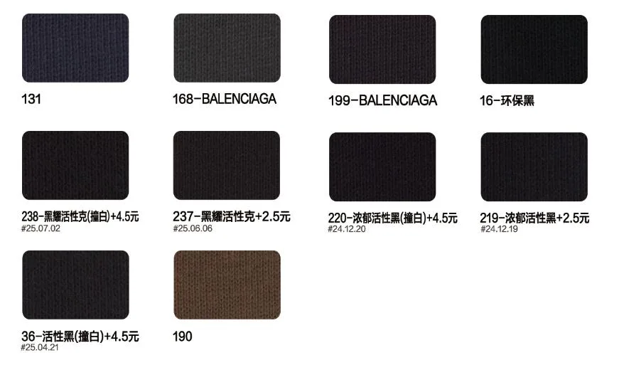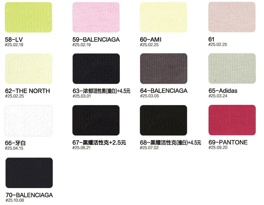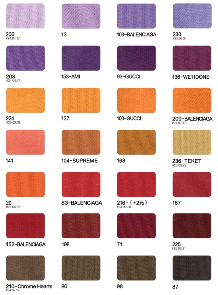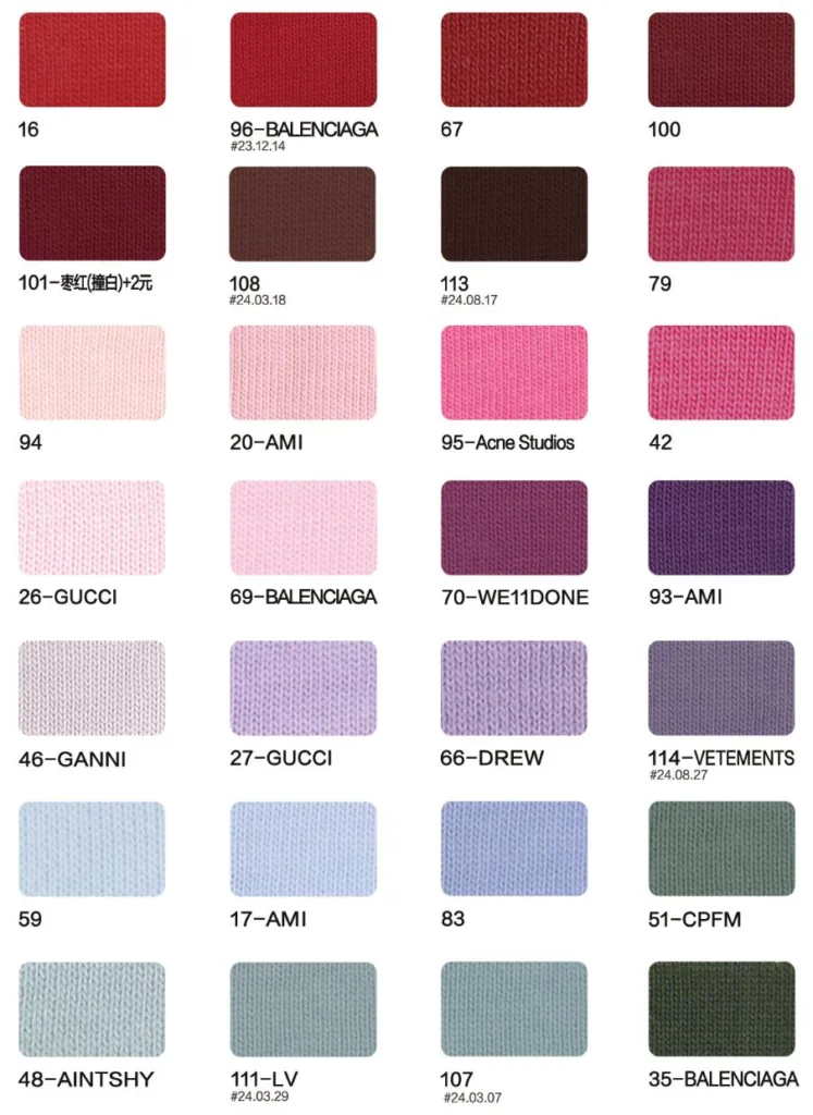 This page showcases popular T-shirt jersey fabrics with weights ranging from 195GSM to 385GSM, all crafted from 100% combed cotton.